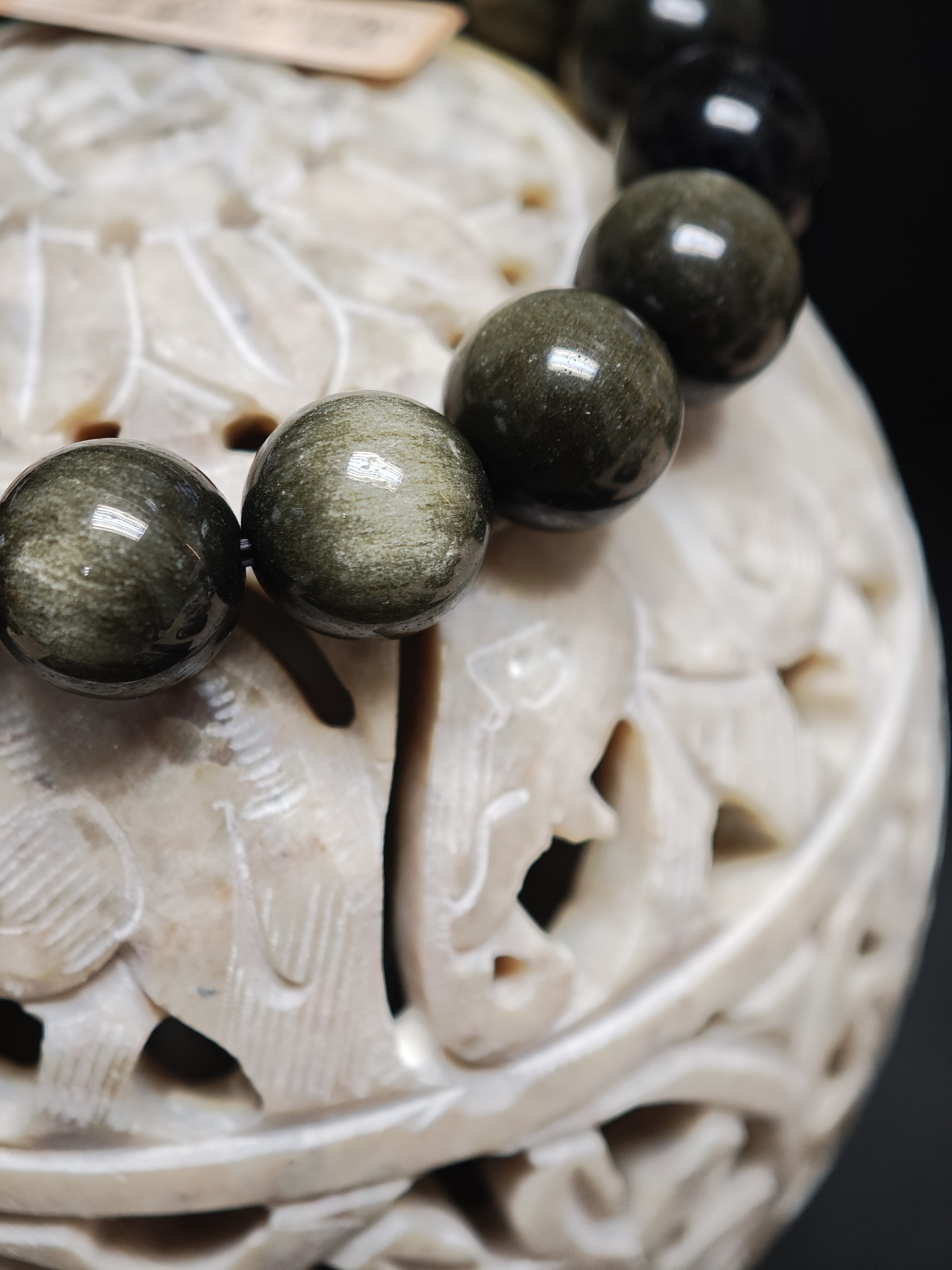💫🟡金曜石手串🟡 金曜石是一種黑曜石品,因其內部含有金色礦物而能在光線照射下反射出閃耀的金光,被稱為(金黑曜石)它具有強大的辟邪能量,可吸收並消除負面能量,壓力與疲勞,同時也能夠招財聚財,提升個人勇氣,行動力及領導魅力! 💫🟡金曜石🟡 -具有強烈的辟邪作用,能有效抵禦負面能量的干擾,並吸收和消除佩戴者身上的壓力,疲勞與濁氣。 -被認為具有招財聚財的功效,象徵財富和富足。 -能增強個人的生命力和行動力,提升膽識與勇氣,使人更加果斷,適合需要魄力和衝勁的人 -有助於平衡過度使用腦部者的精神,使人保持沉著冷靜,減輕壓力與焦慮,改善睡眠質量 -能夠提升領袖魅力和向心力,適合管理者和領導者佩戴 ✨11+mm✨$268 🗣️功效非精密科學,僅供參考 ⚠️敬請留意🙇 ✨因不同場景🏠🏝️室內燈光下拍攝或電腦螢幕設定不同,晶石的顏色均稍為有微色差,因此顏色以實物為準🙇 ⚠️天然水晶均有天然紋路,冰裂,棉絮或少許礦缺✨如介意者,請注意🙇 ✨不議價,貨物出門恕不退換 ✨為免不必要爭拗 ✨如有問題歡迎私訊查詢🙇🙇💌 ✨全部實物拍攝 ✨質素如一😊隨機發貨 ------------------------------------------------------------------ #DIY#Kaneko_suisho#天然#水晶#香港#金曜石##金髮晶#金虎眼石#草莓晶#月光石#粉晶#愛情運#黑骨干#灰月光##青金石##紫水晶#金髮晶##綠草莓#多寶水晶#新手入門#鴿血草莓晶#愛情運#增強人緣