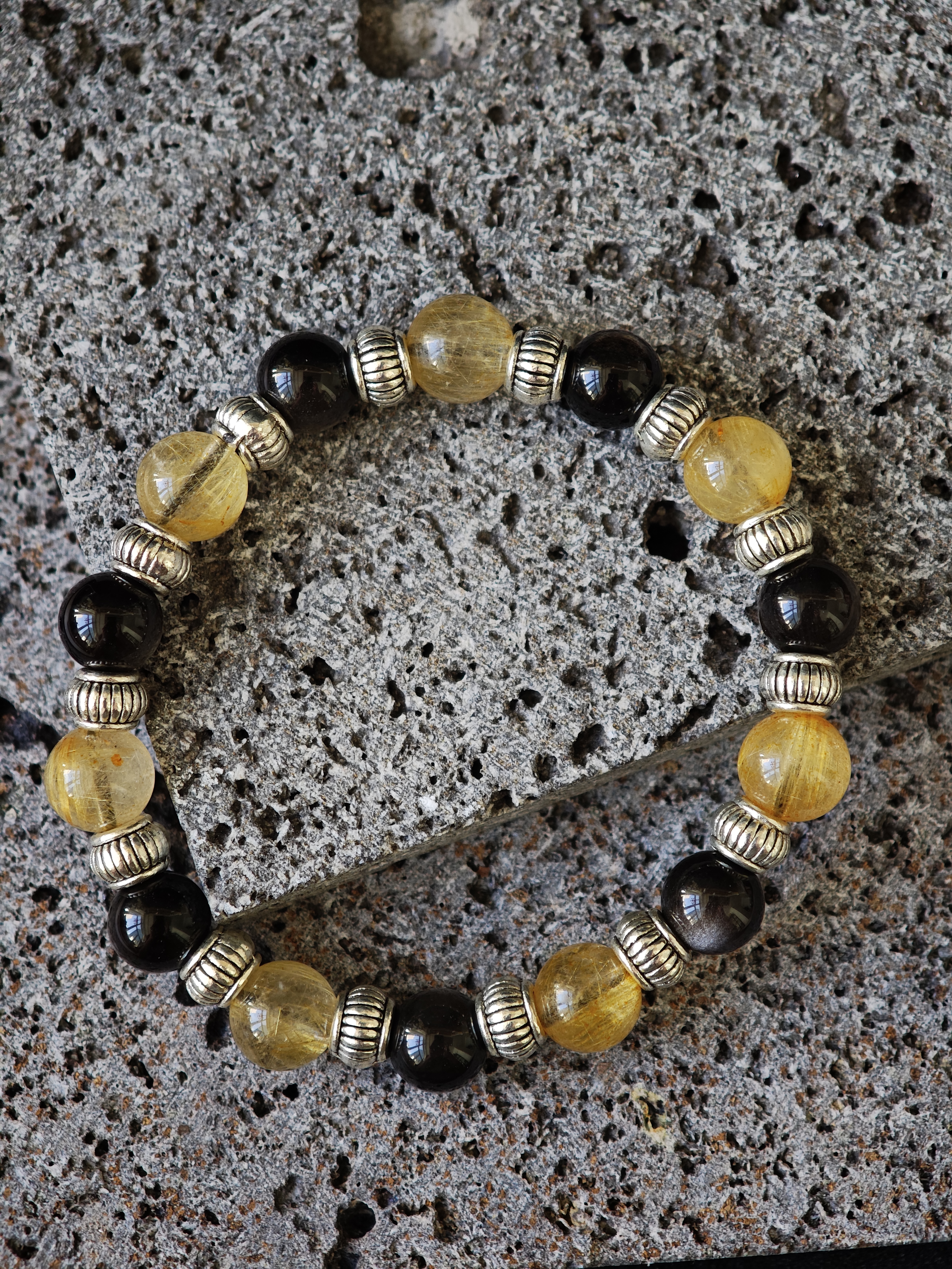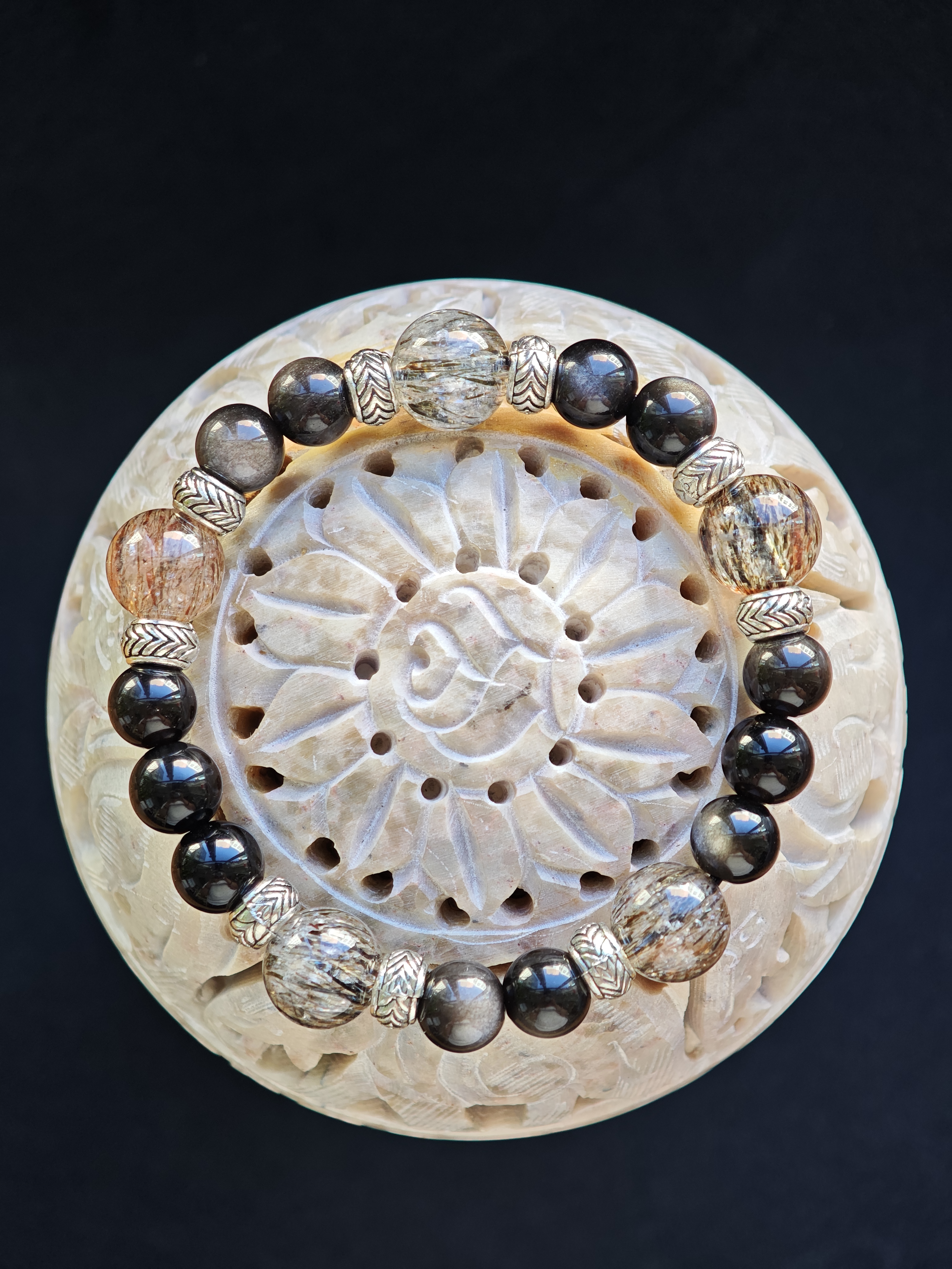 ✨新品DIY水晶手串✨✨🌌黑金超七配🤍銀曜石✨