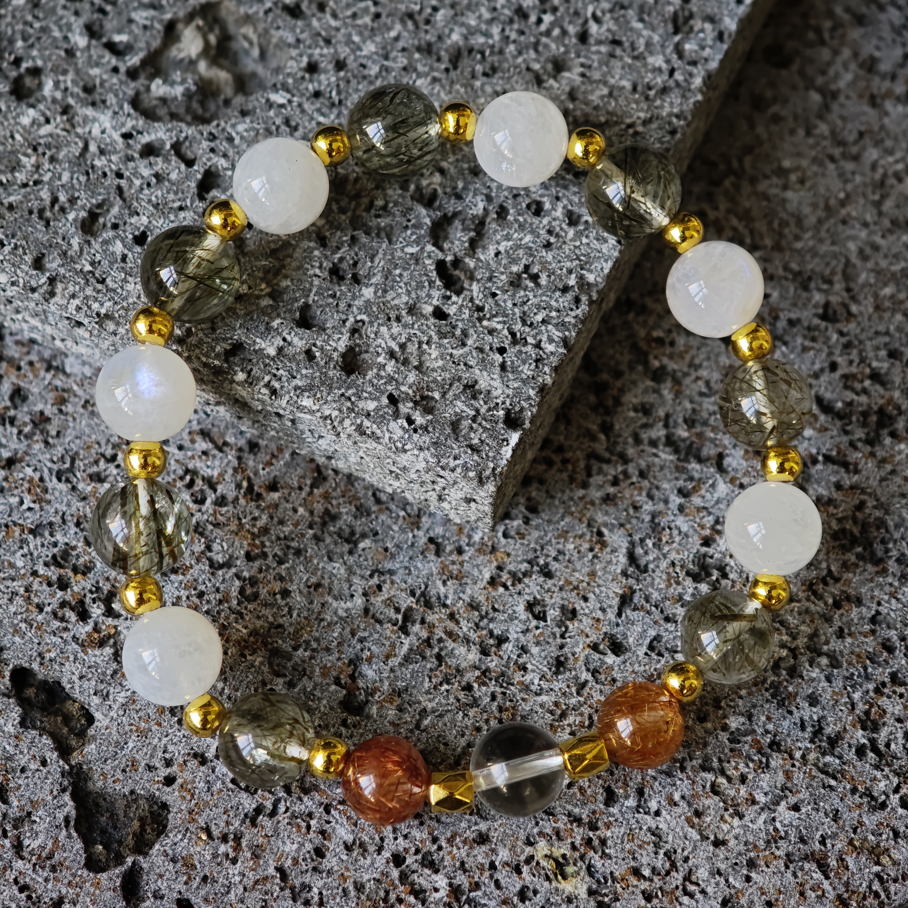 ✨新品DIY水晶手串✨✨🟢綠碧璽髮晶✨🌕白月亮✨🤍白水晶✨🔴紅銅髮✨