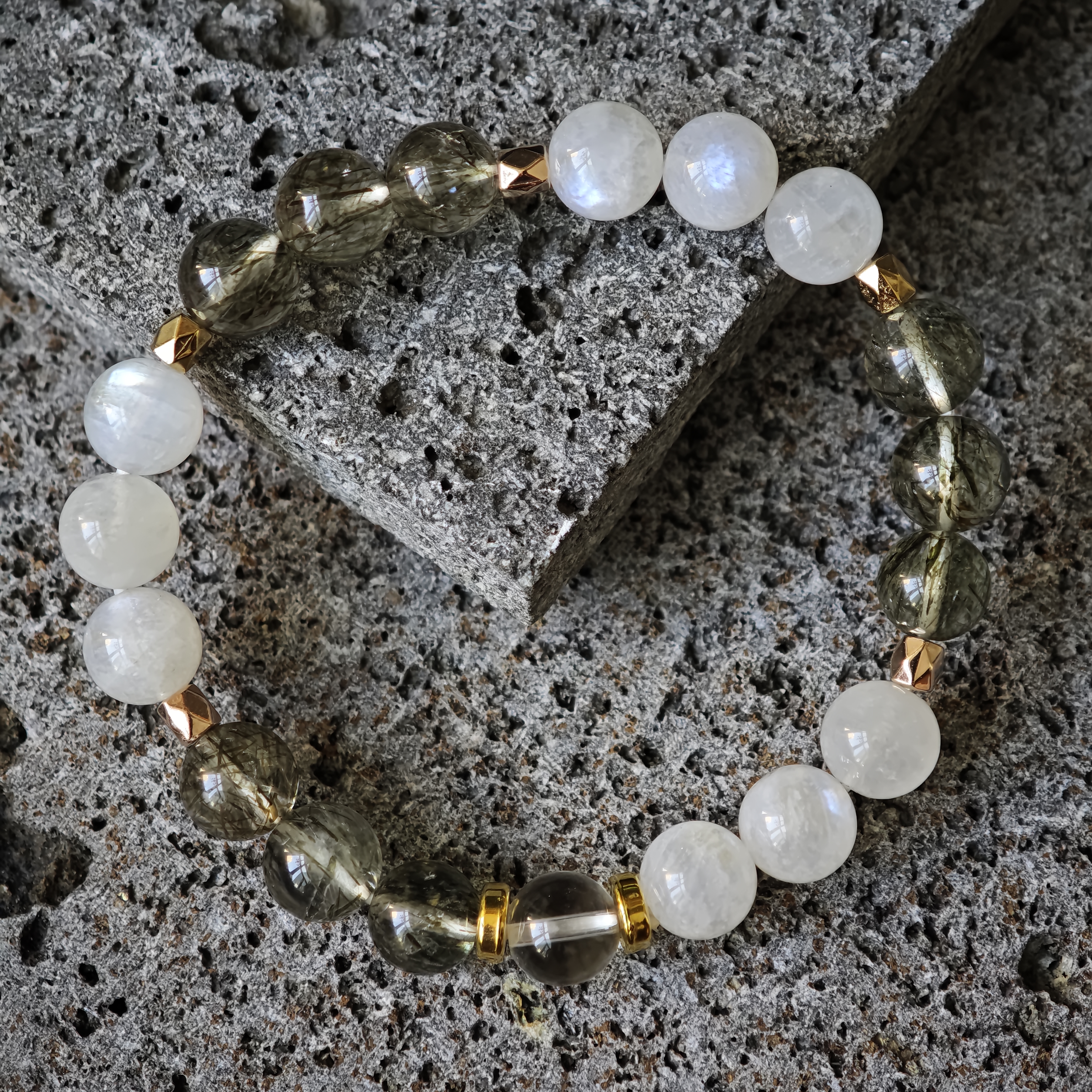 ✨新品DIY水晶手串✨✨🤍銀曜石✨💛金髮晶💰✨